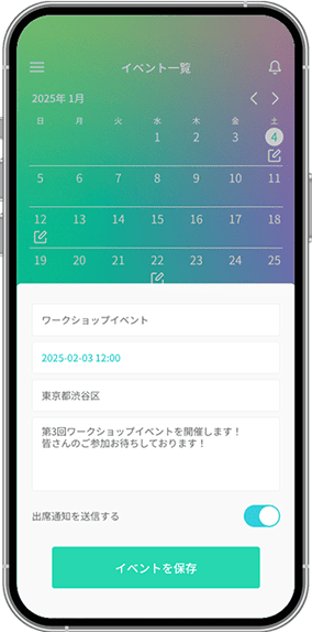 共有イベントや試合、レッスン予定を保護者と瞬時に共有。